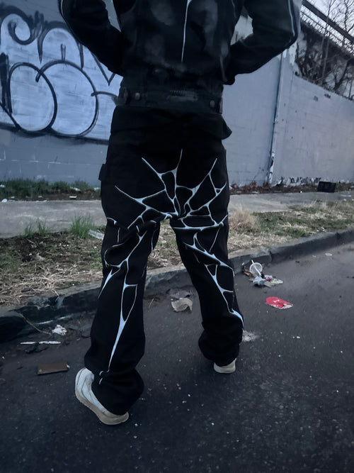 Black hoodie with the Web embroidered on the right side of the hood. Hoodies are hand embroidered and take an hour and a half each piece to create only taking 5 orders at a time once orders are shipped more hoodies will be available.
